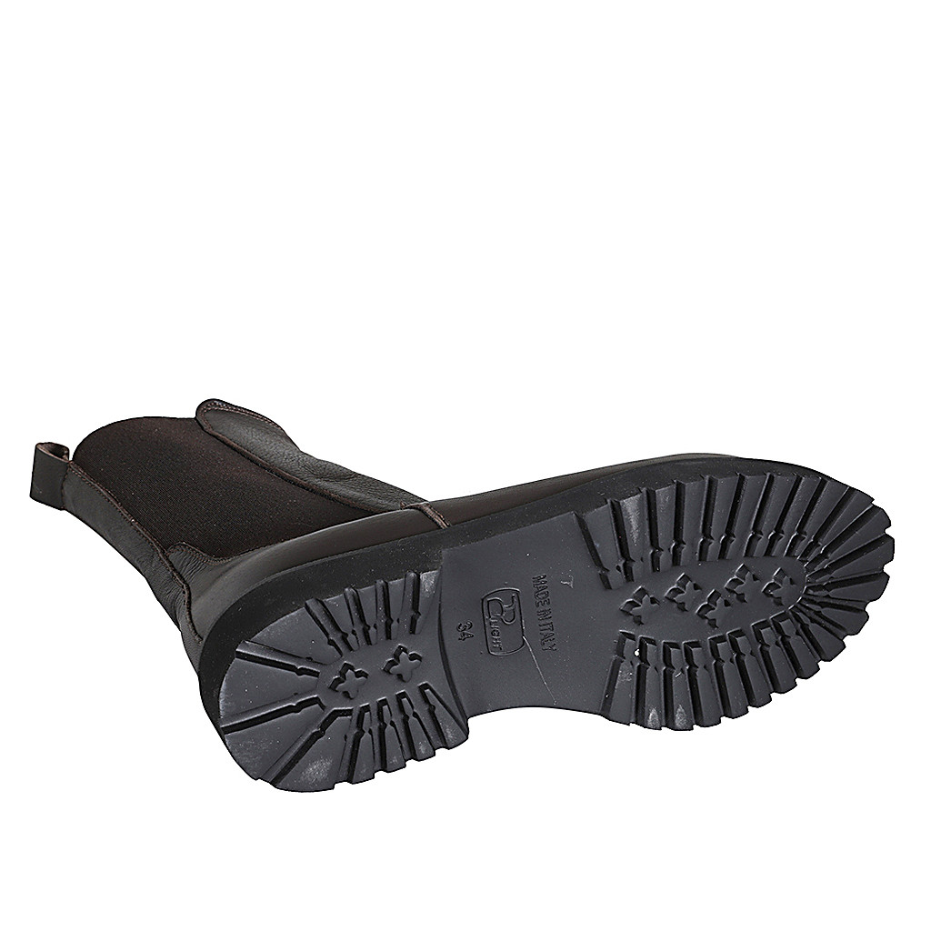 Woman's ankle boot with lateral elastic bands in cognac brown leather heel 5