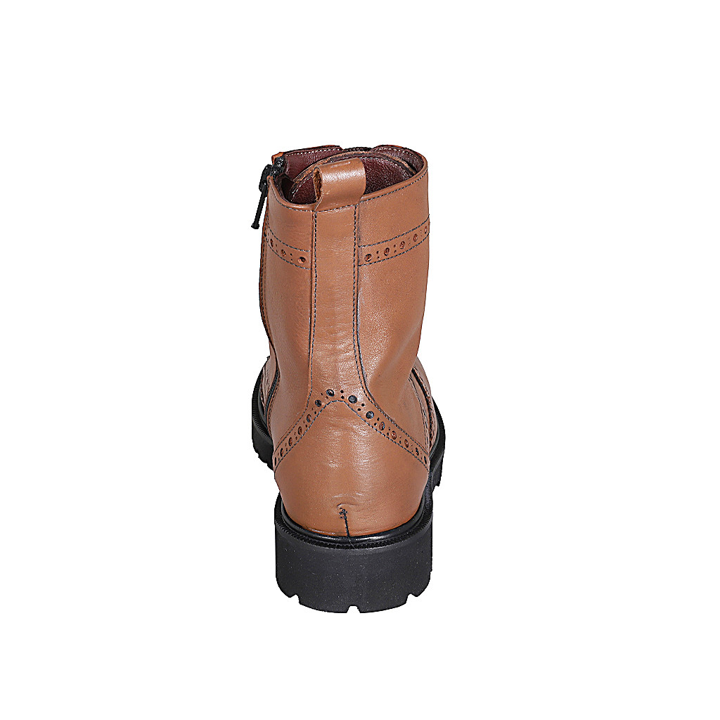 Woman's ankle boot with zipper, elastic band and Brogue wingtip in black patent leather heel 3