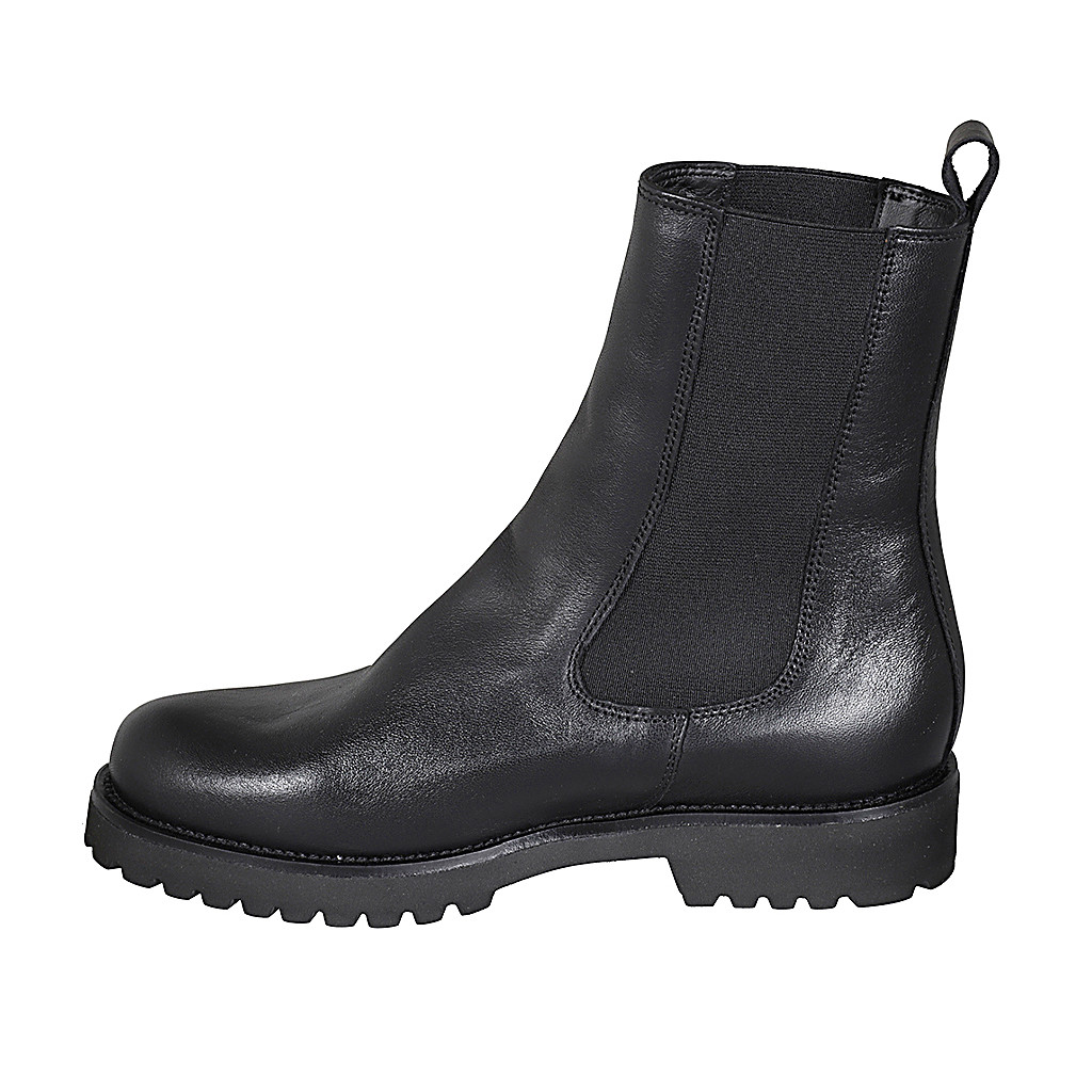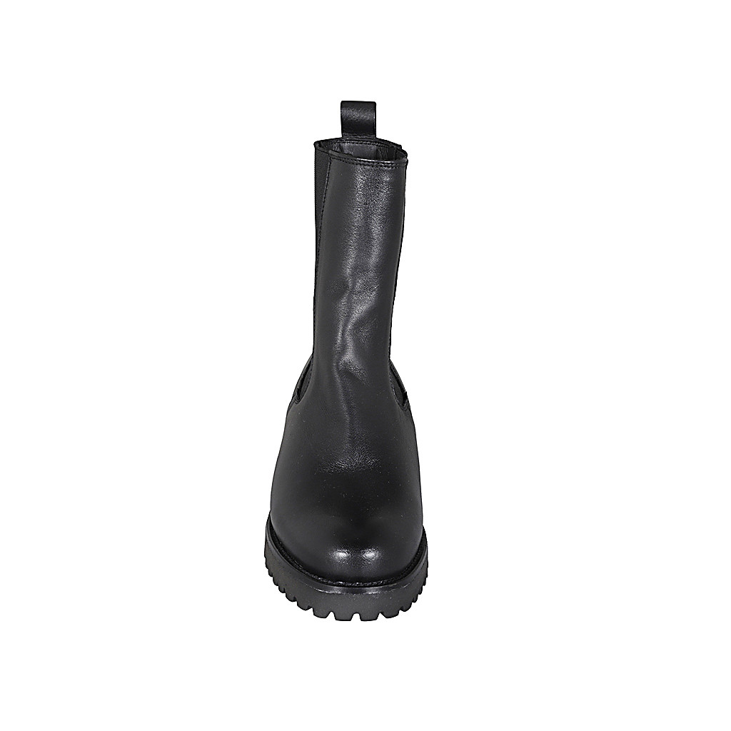 Woman's high ankle boot with elastic bands in black leather heel 3