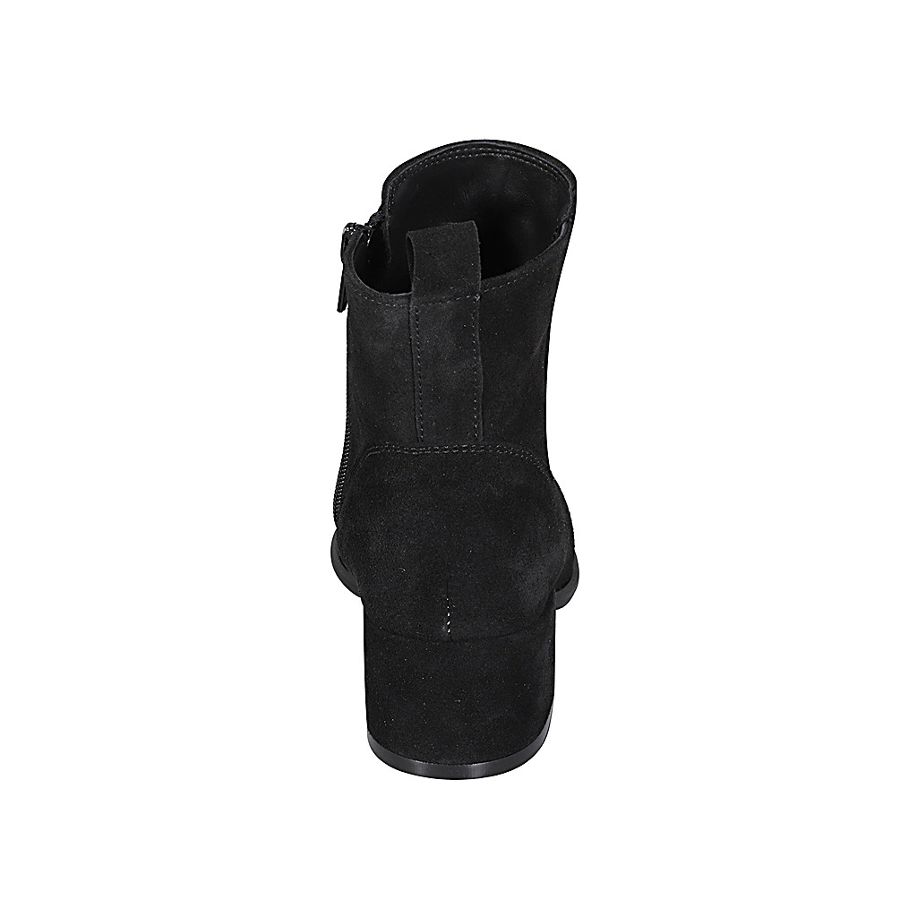 Woman's pointy ankle boot in black suede with zipper heel 5