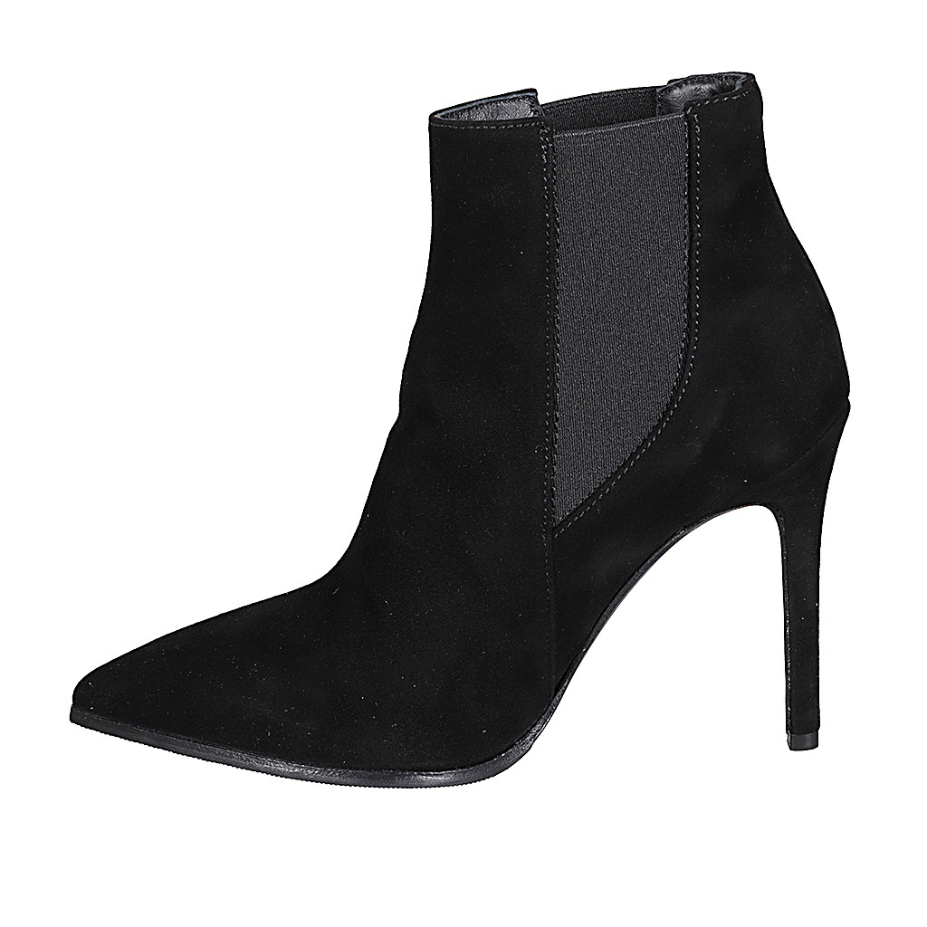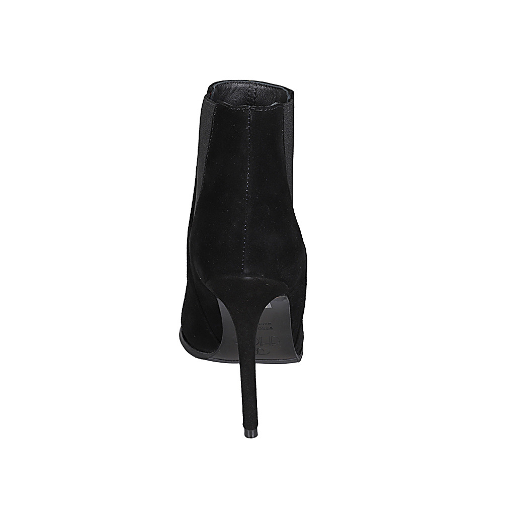 Woman's ankle boot with elastic bands and accessory in brown suede heel 5