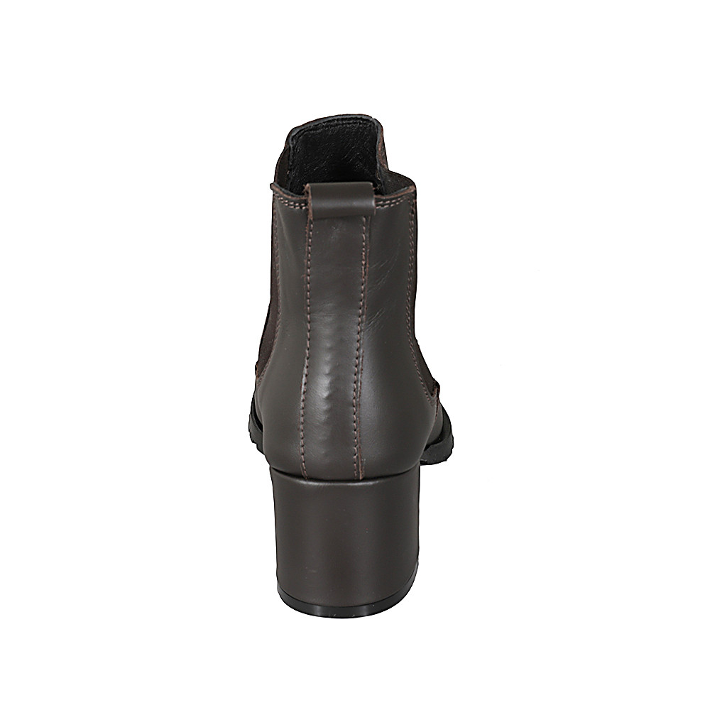 Woman's ankle boot in dark brown leather with elastic bands heel 5 - Available sizes:  43, 44, 45