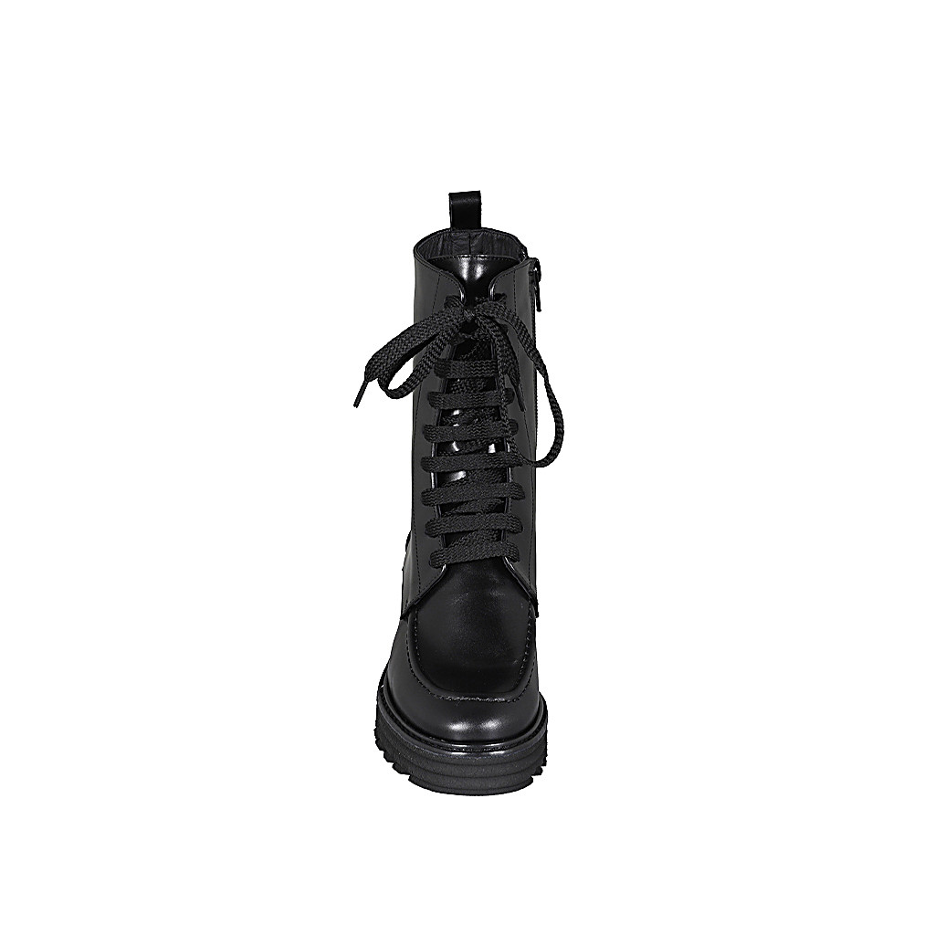 Woman's laced ankle boot with zipper in black leather heel 4 - Available sizes:  32, 43, 44