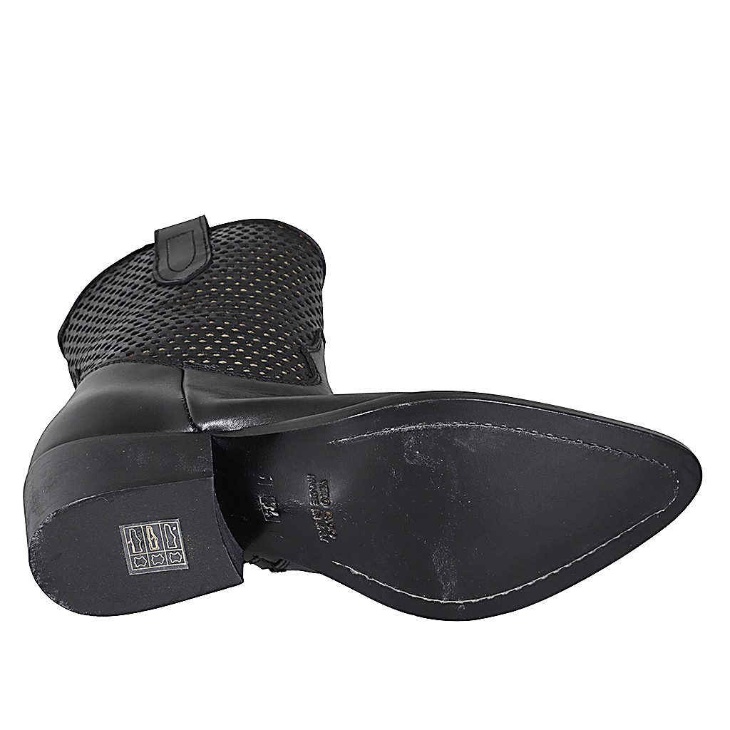 Woman's laced ankle boot with zipper in black smooth leather heel 3