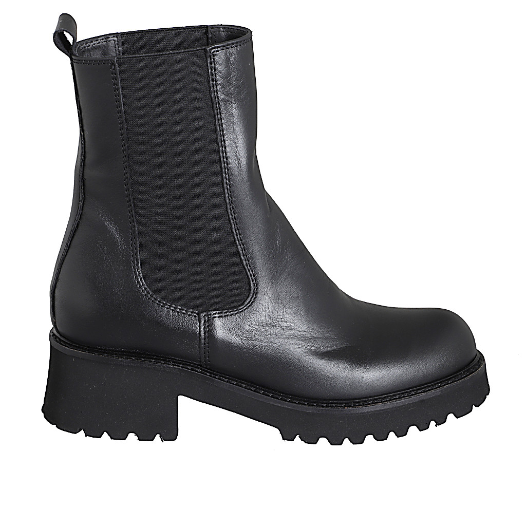 Woman's high Chelsea ankle-high boot with elastic bands in black leather heel 5