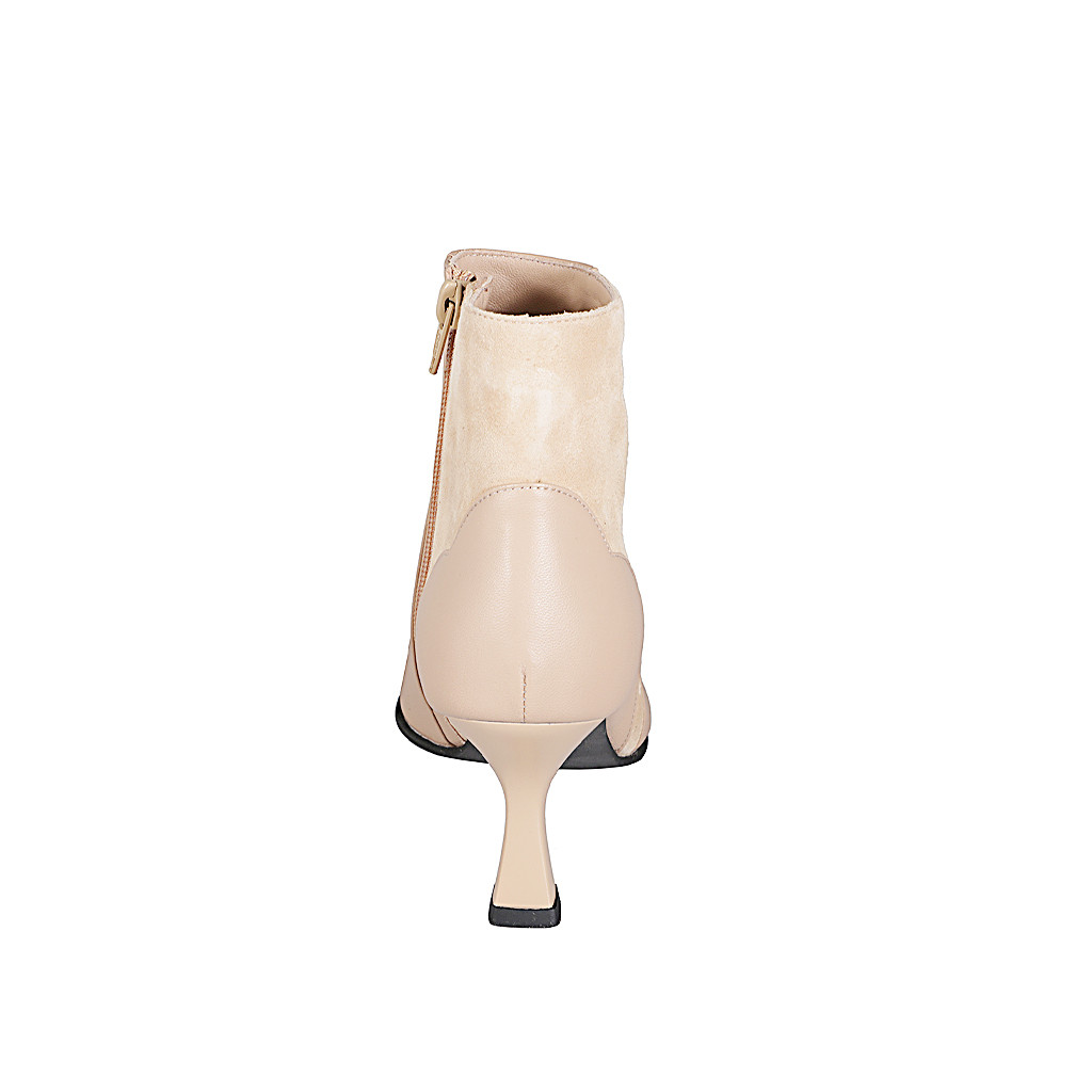 Woman's ankle boot in nude leather and sand beige suede with zipper heel 7 - Available sizes:  32, 33, 35, 42, 43, 44, 45, 46