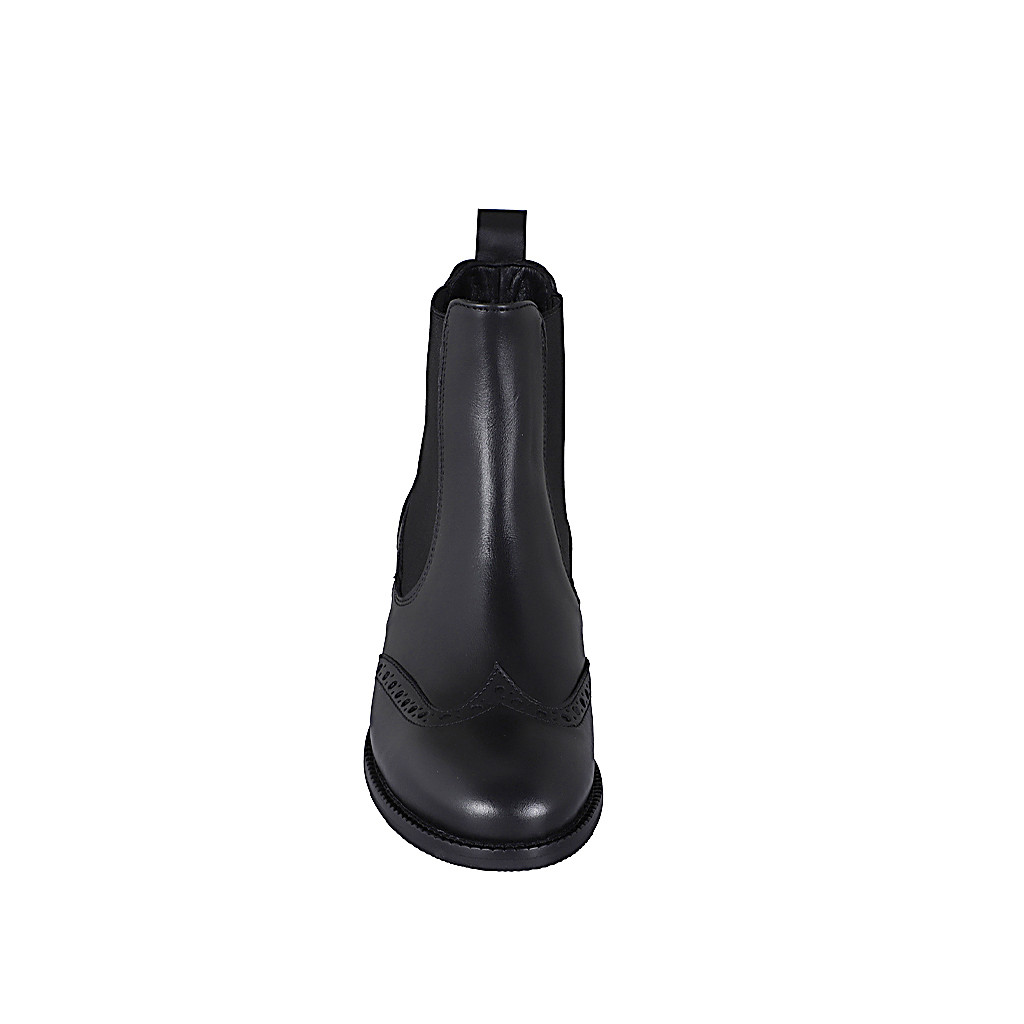 Woman's high Chelsea ankle-high boot with elastic bands in cream-colored leather heel 4
