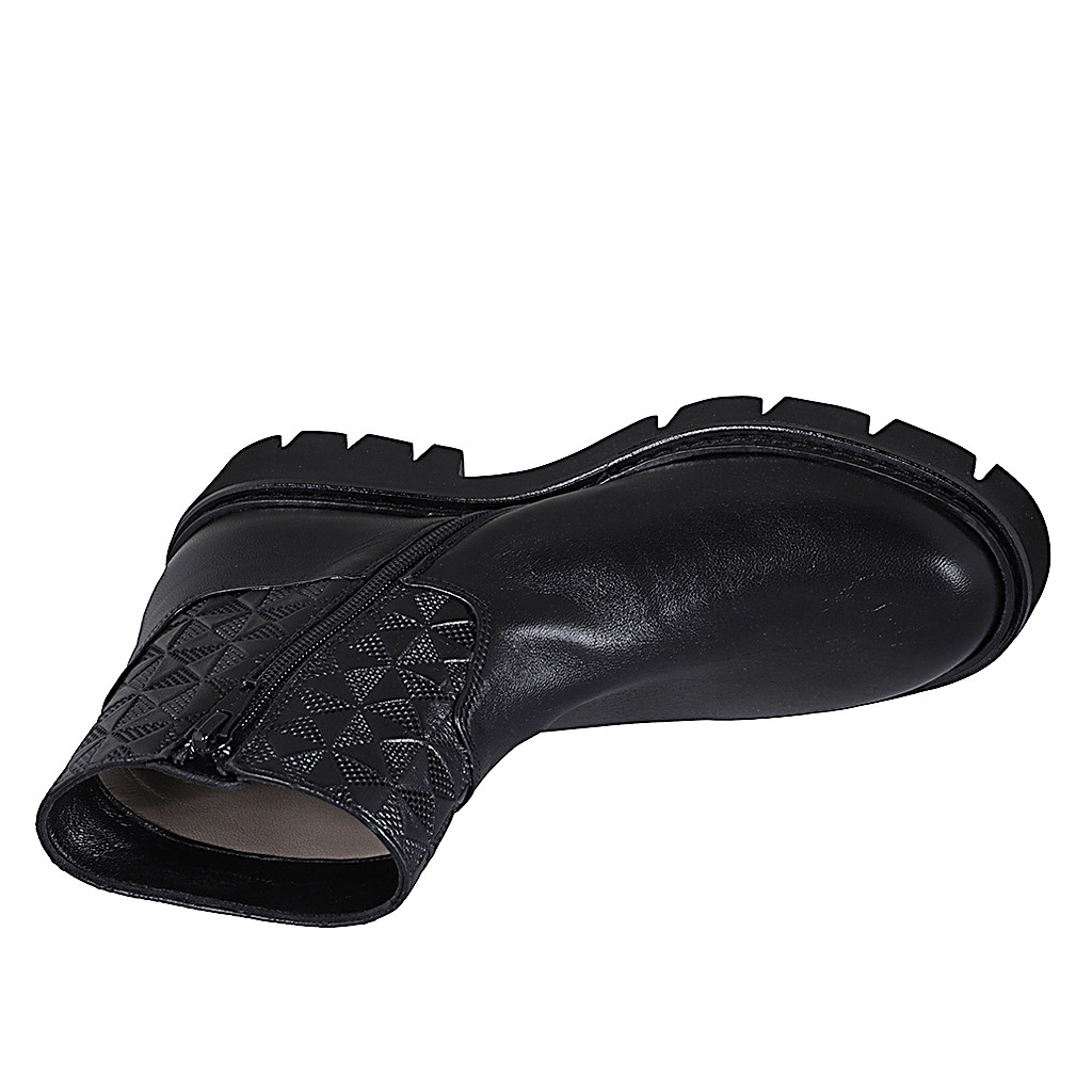 Woman's ankle boot in black leather with zipper and round tip heel 3
