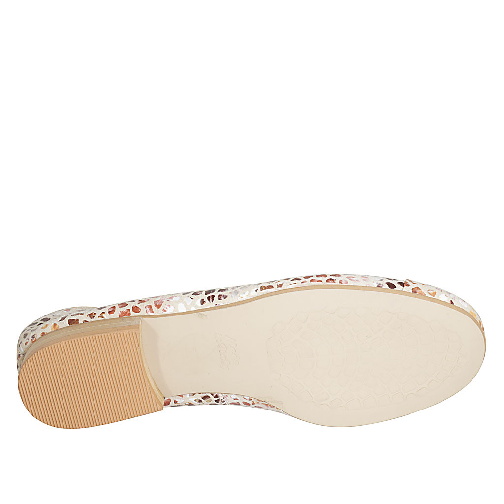 Woman's ballerina shoe with bow and captoe in beige multicolored printed suede heel 2