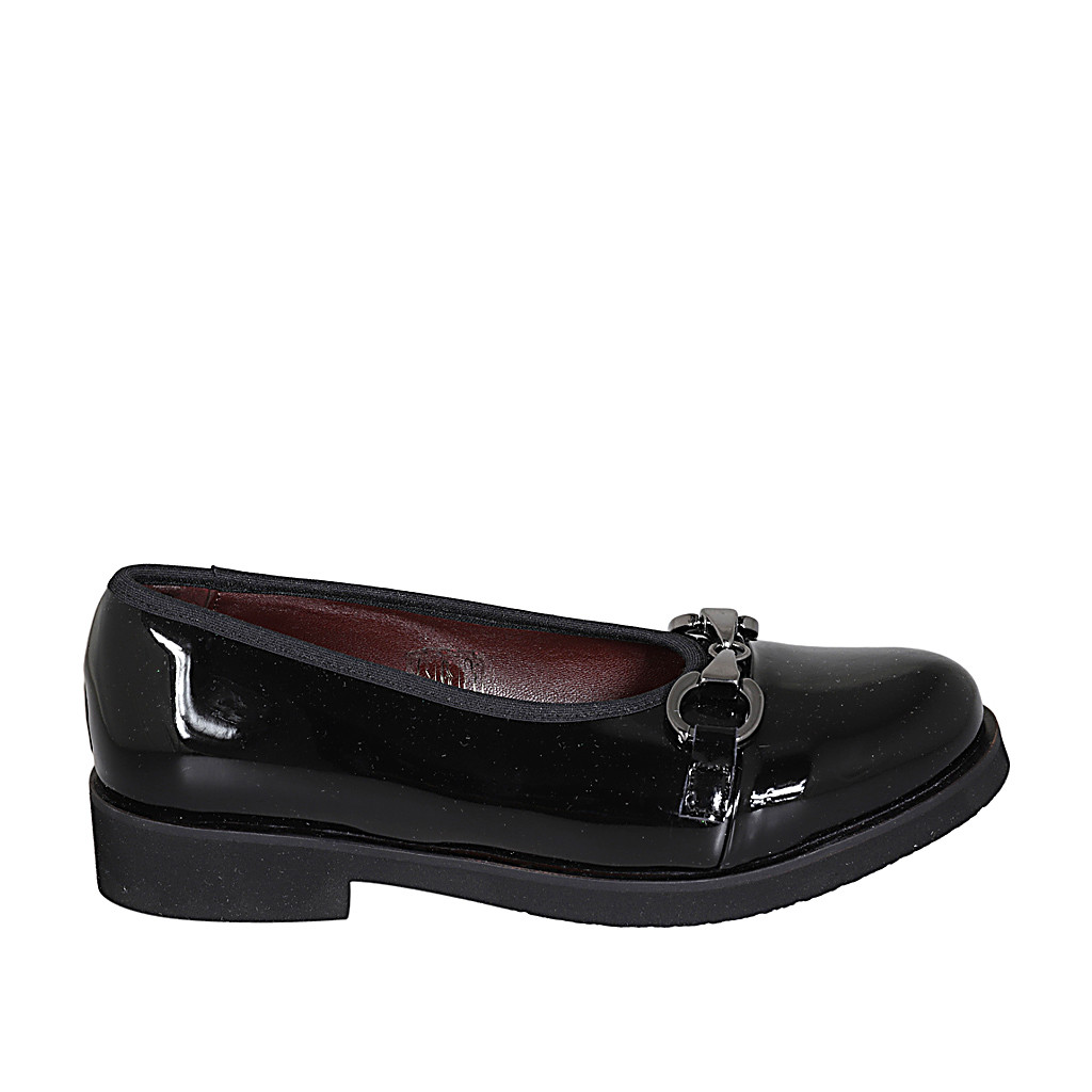 Woman's ballerina with accessory and captoe in black patent leather heel 3