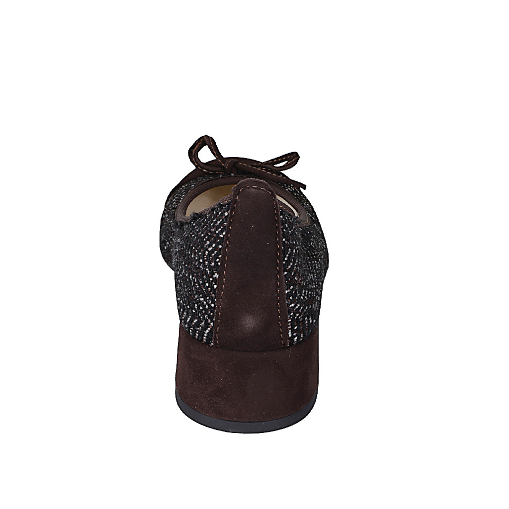Woman's ballerina with bow and captoe in dark brown suede and black, white and bordeaux fabric heel 4 - Available sizes:  32, 33, 34, 35, 42, 43, 44, 45, 46