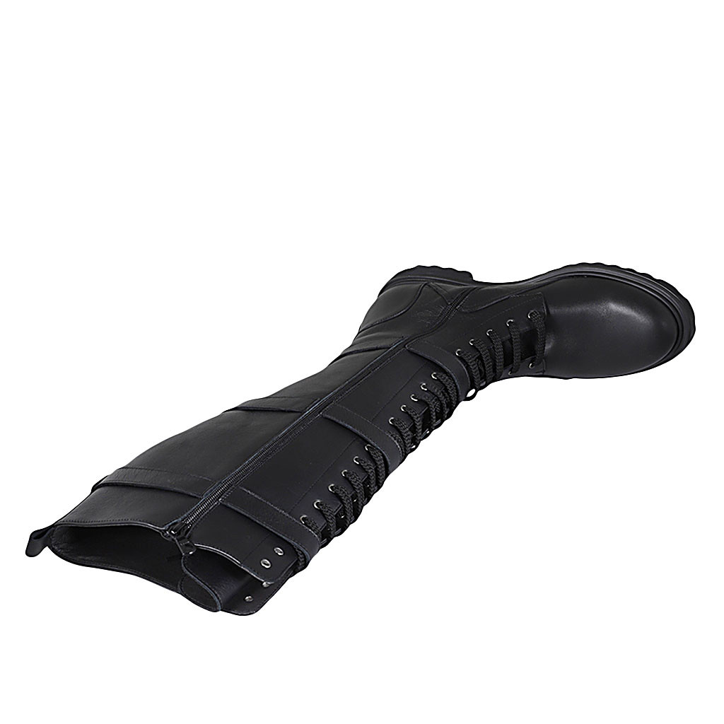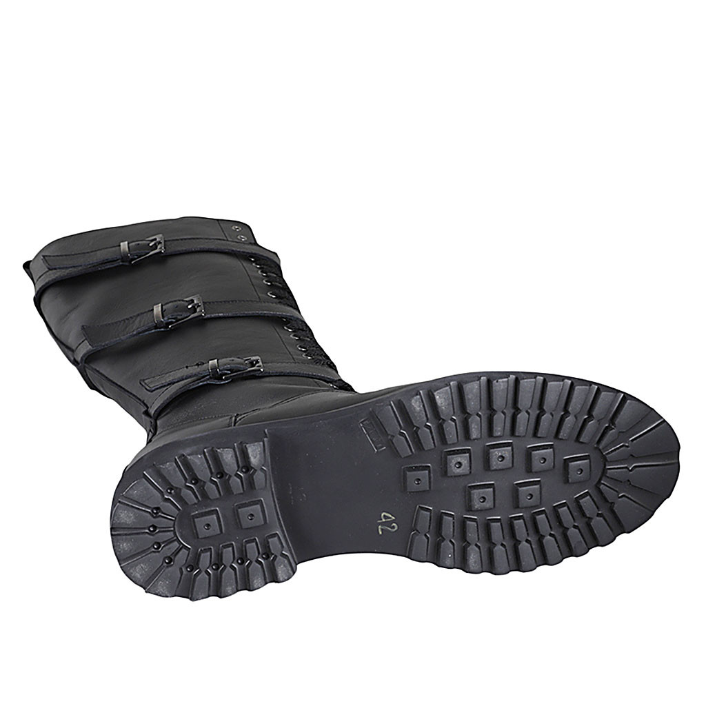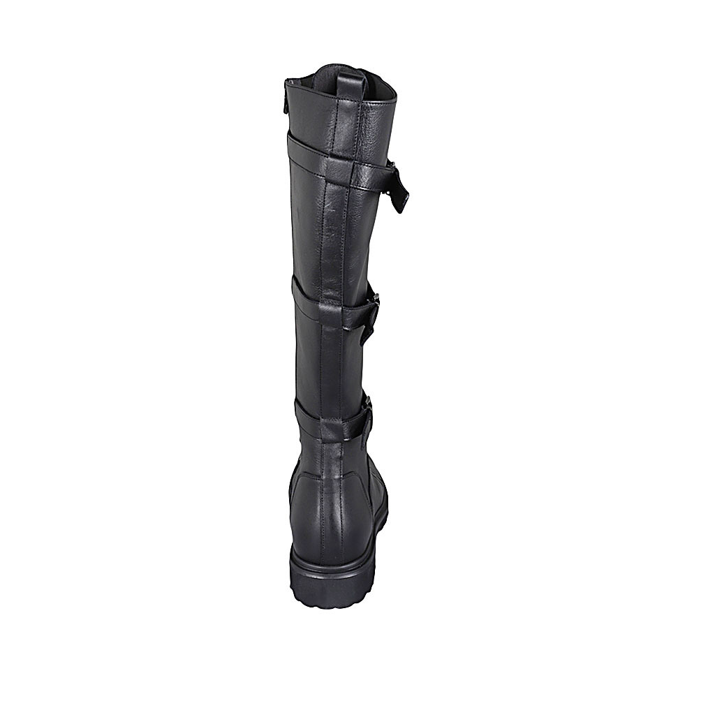 Woman's laced boot with buckles and zipper in black leather heel 4 - Available sizes:  42, 43