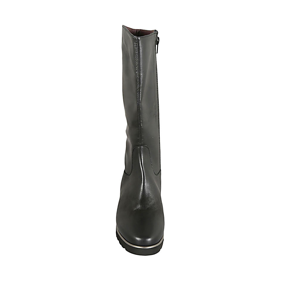 Woman's boot in black-colored leather with zipper heel 5 - Available sizes:  43