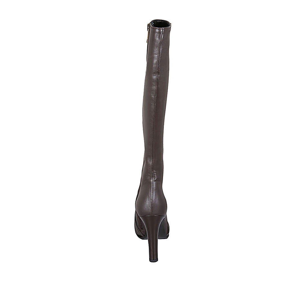 Woman's pointy boot with zipper in dark brown leather heel 10 - Available sizes:  32