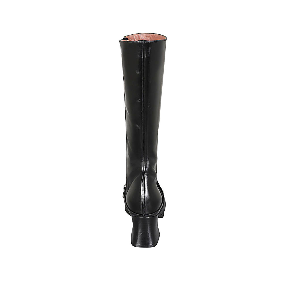 Woman's boot in black leather with zipper and accessory heel 5