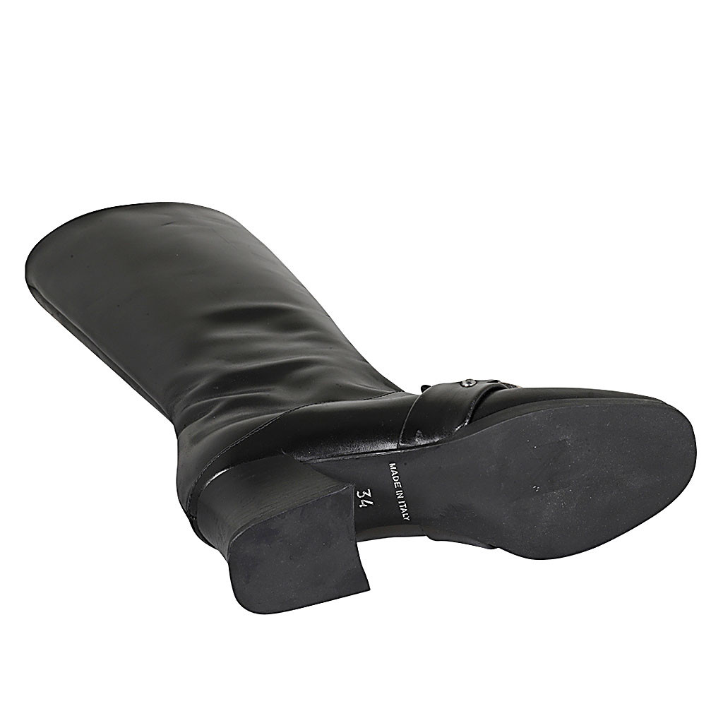 Woman's boot in black leather with zipper and accessory heel 5 - Available sizes:  42, 45