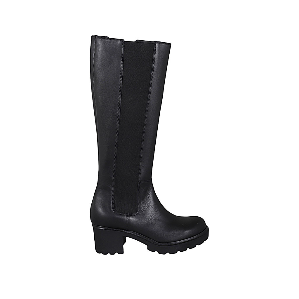 Woman's ankle boot with elastic bands in cognac brown suede with heel 3
