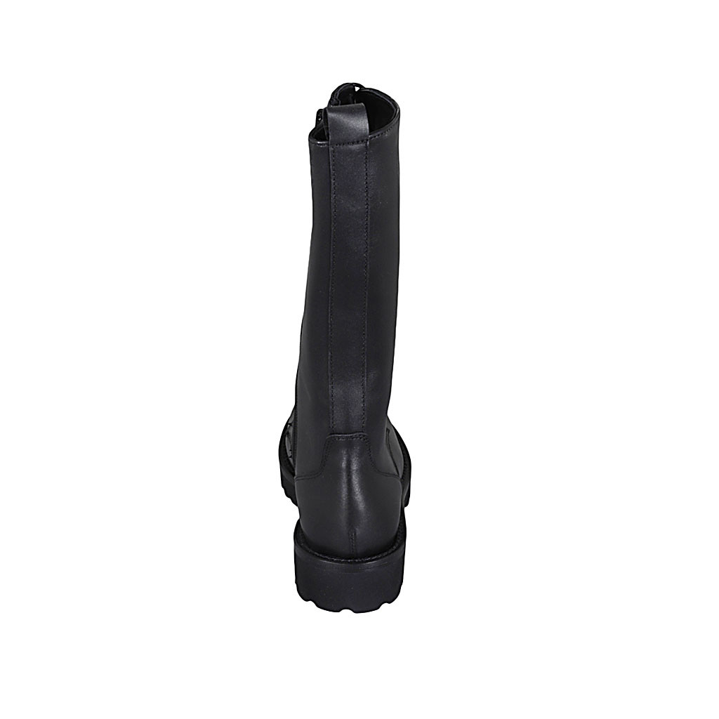 Woman's laced boot in black leather with zipper heel 3 - Available sizes:  32, 33