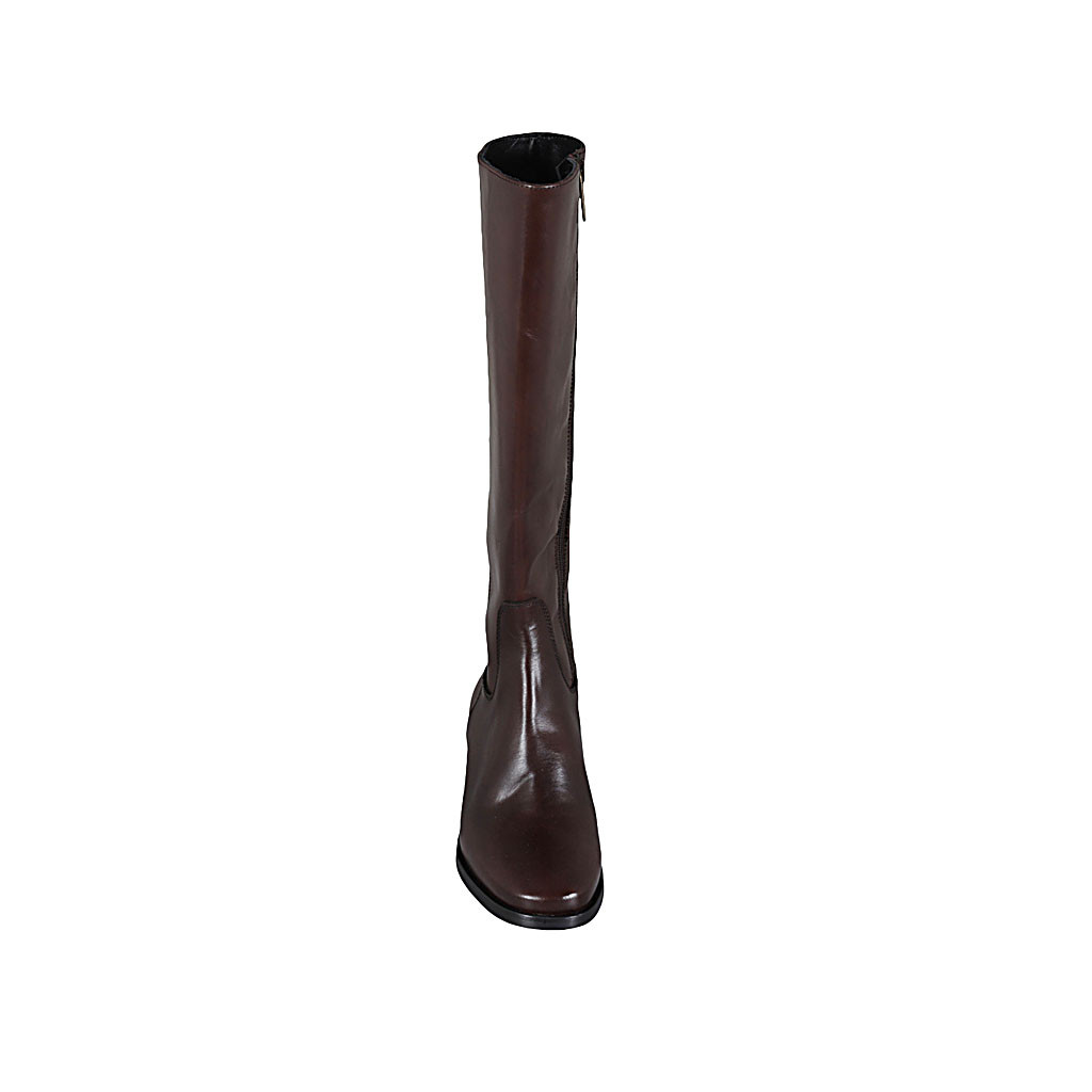 Woman's boot with zipper in brown leather heel 4