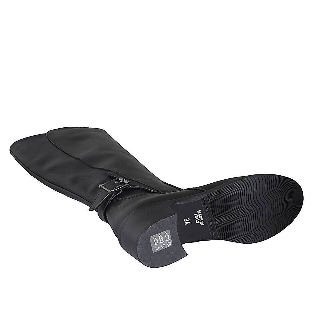 Woman's boot with half zipper in black leather and elastic material heel 6