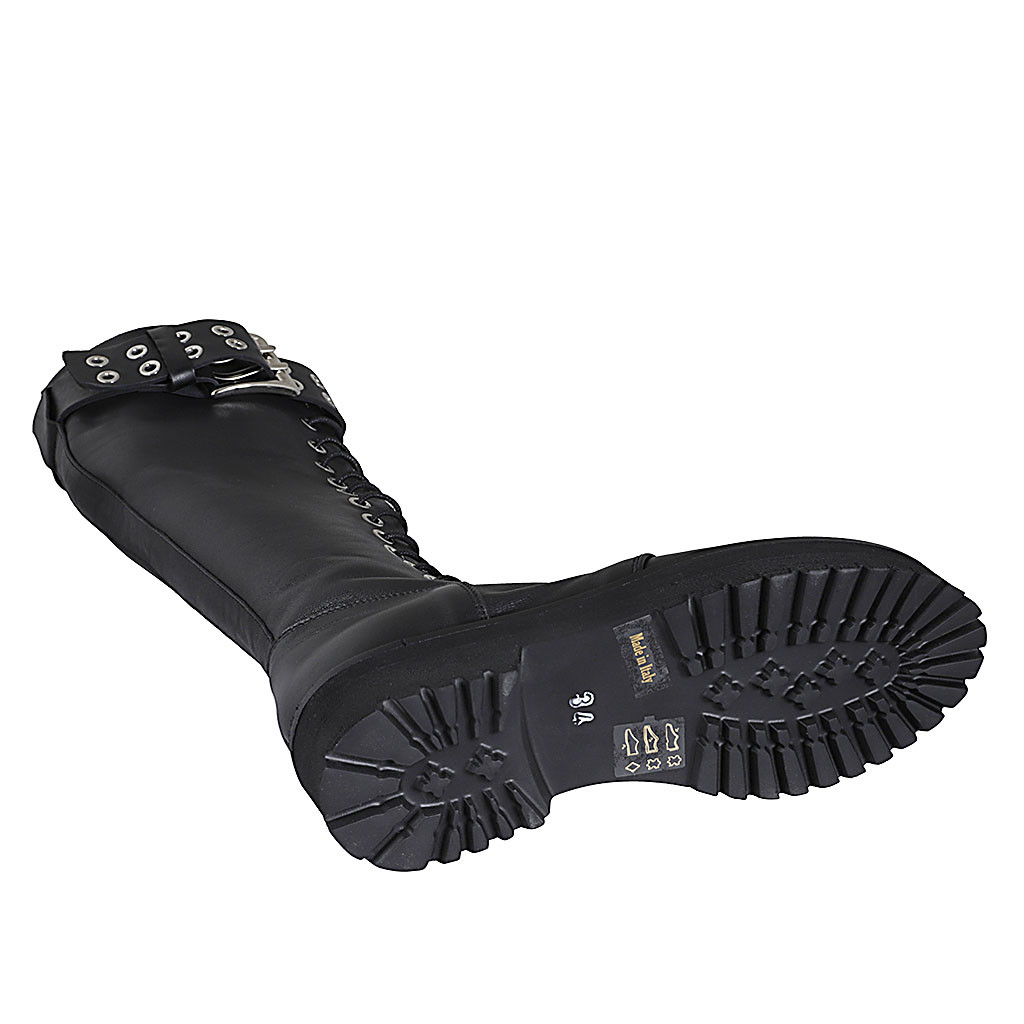 Woman's ankle boot in black leather with elastic bands with heel 3