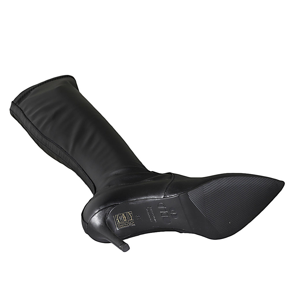 Woman's over-the-knee pointy boot in black leather and elastic material heel 7 - Available sizes:  33, 42