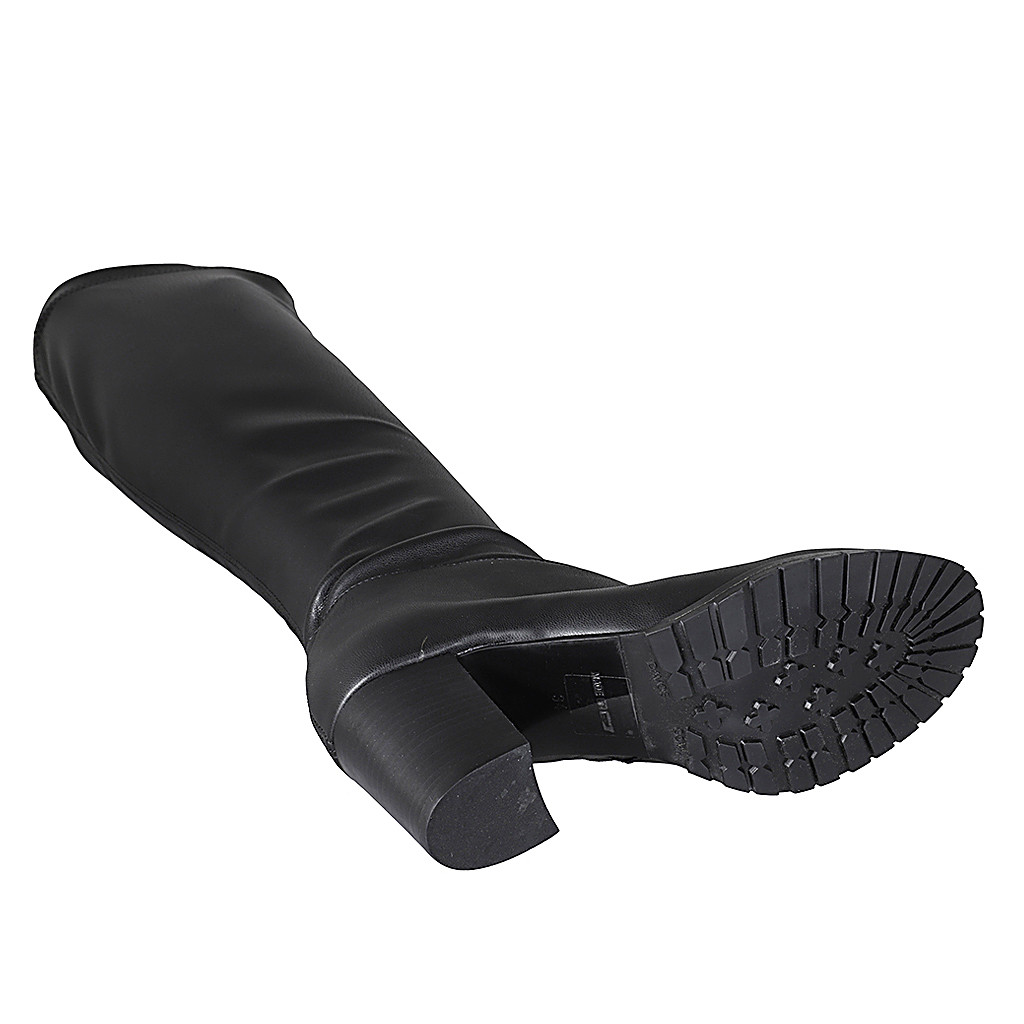 Woman's over-the-knee boot in black leather and elastic material heel 3