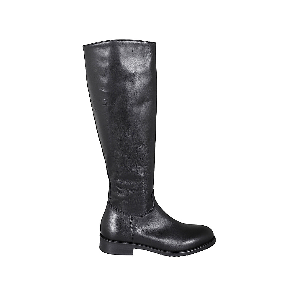 Woman's boot with zipper in black leather heel 3 - Available sizes:  34