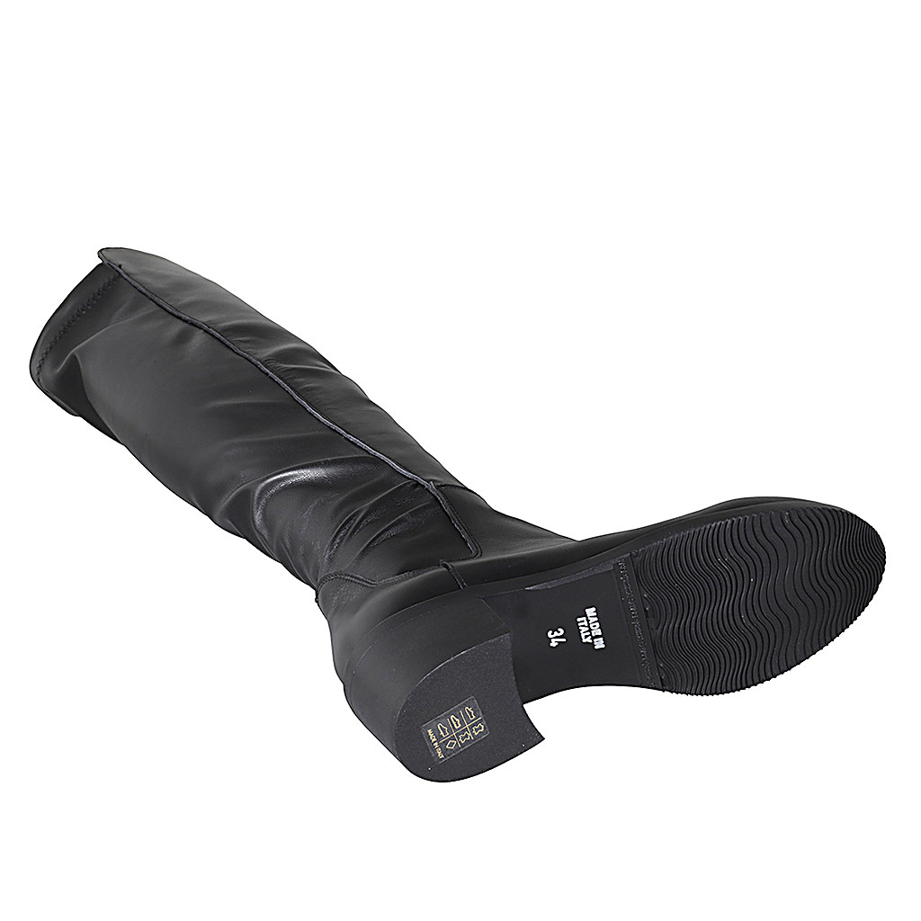 Woman's over-the-knee boot in black elastic material and leather with half zipper heel 5