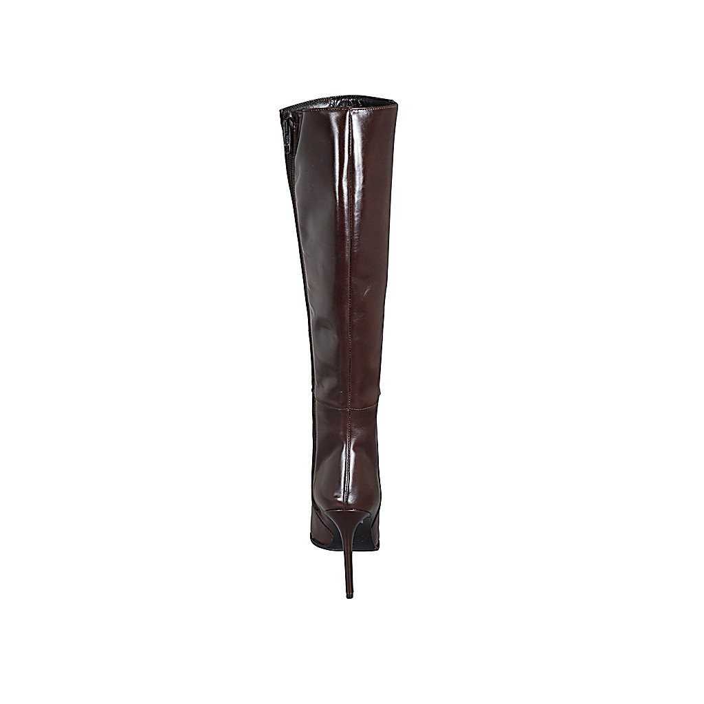 Highfronted shoe with platform, studs and zipper in brown suede heel 15