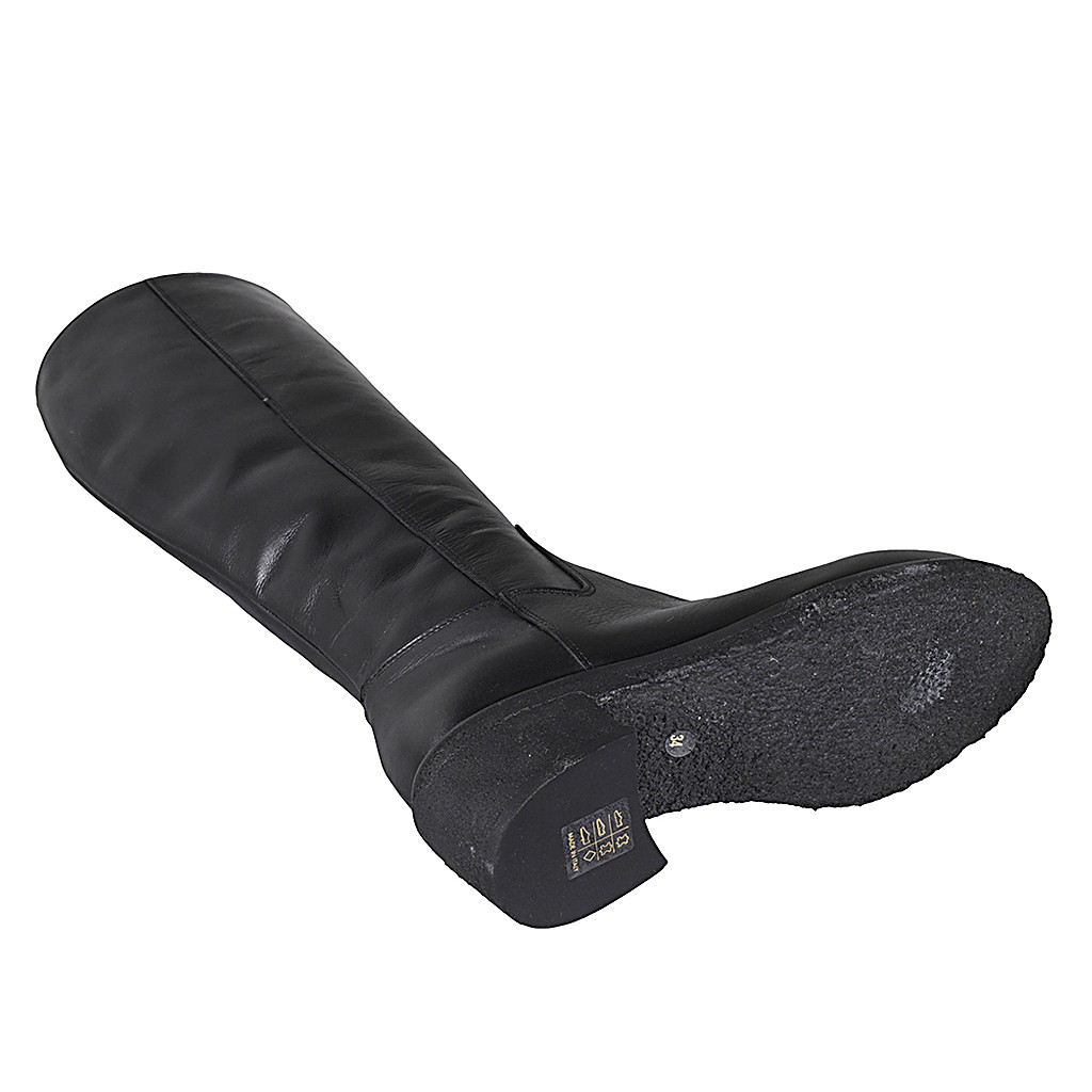 Woman's boot with zipper and rounded tip in black leather heel 5