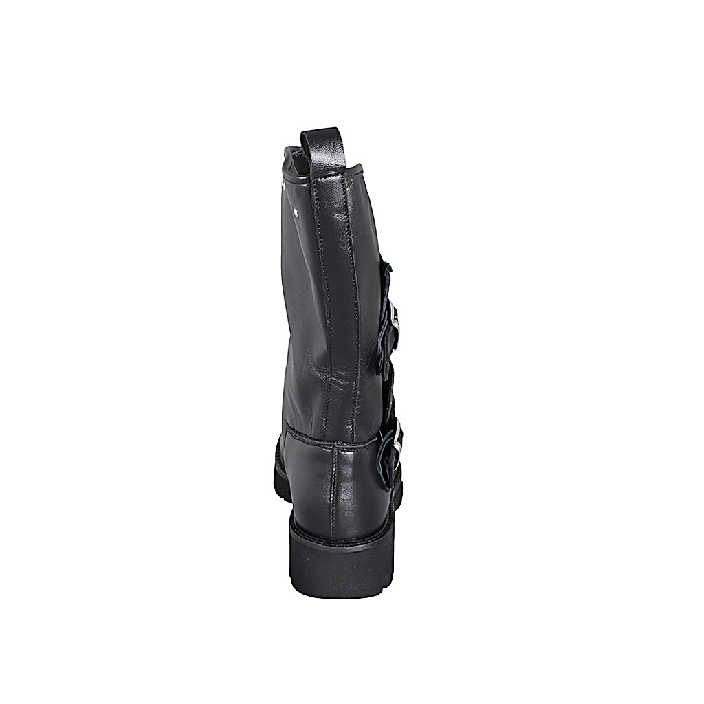 Woman's boot with double buckles and studs in black leather heel 3