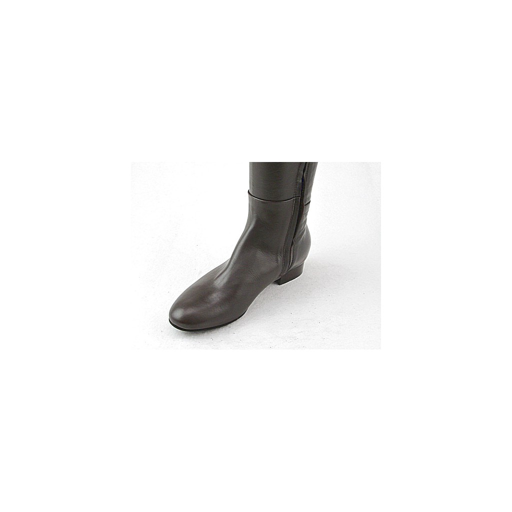 Woman's mules with adjustable buckles in silver laminated printed suede wedge heel 4