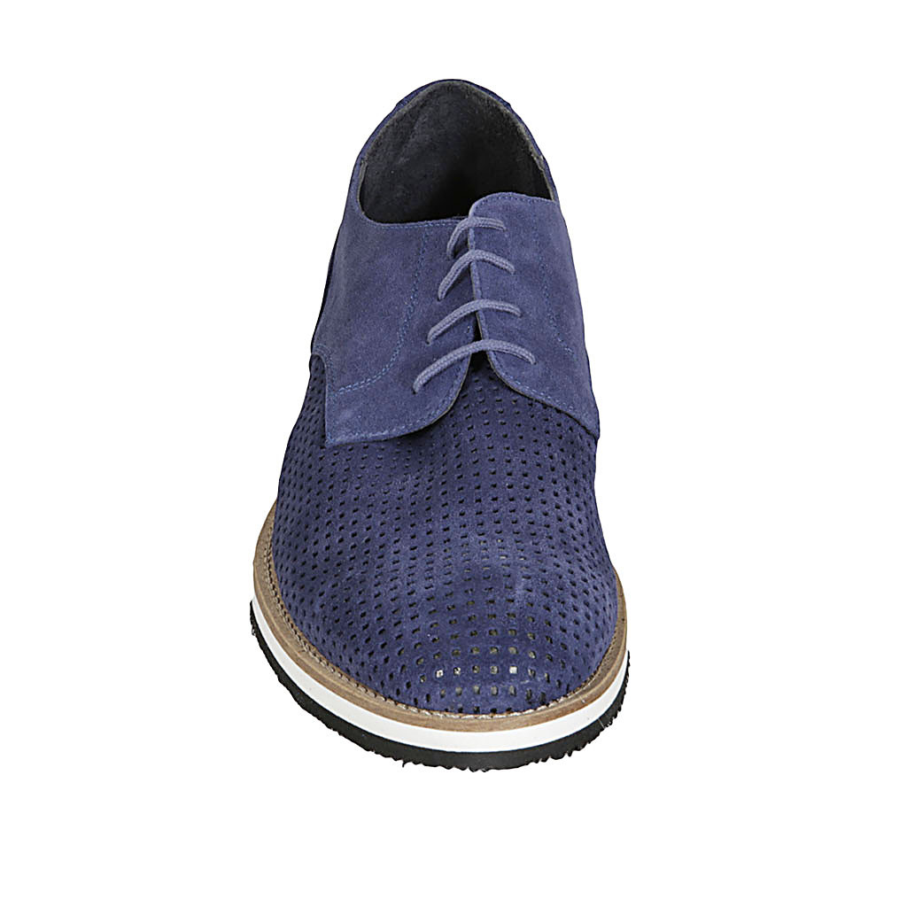 Man's laced shoe with removable insole in taupe nubuck leather and white, green and red leather