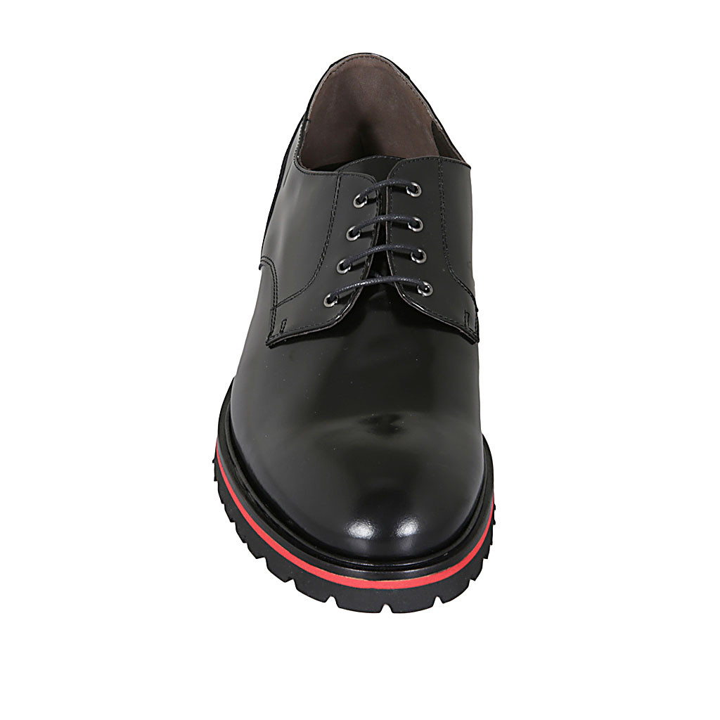 Man's laced derby shoe in black brush-off leather - Available sizes:  49