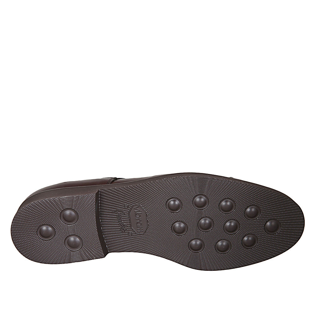Men's highfronted shoe with rubber band and captoe in black leather and brush-off leather