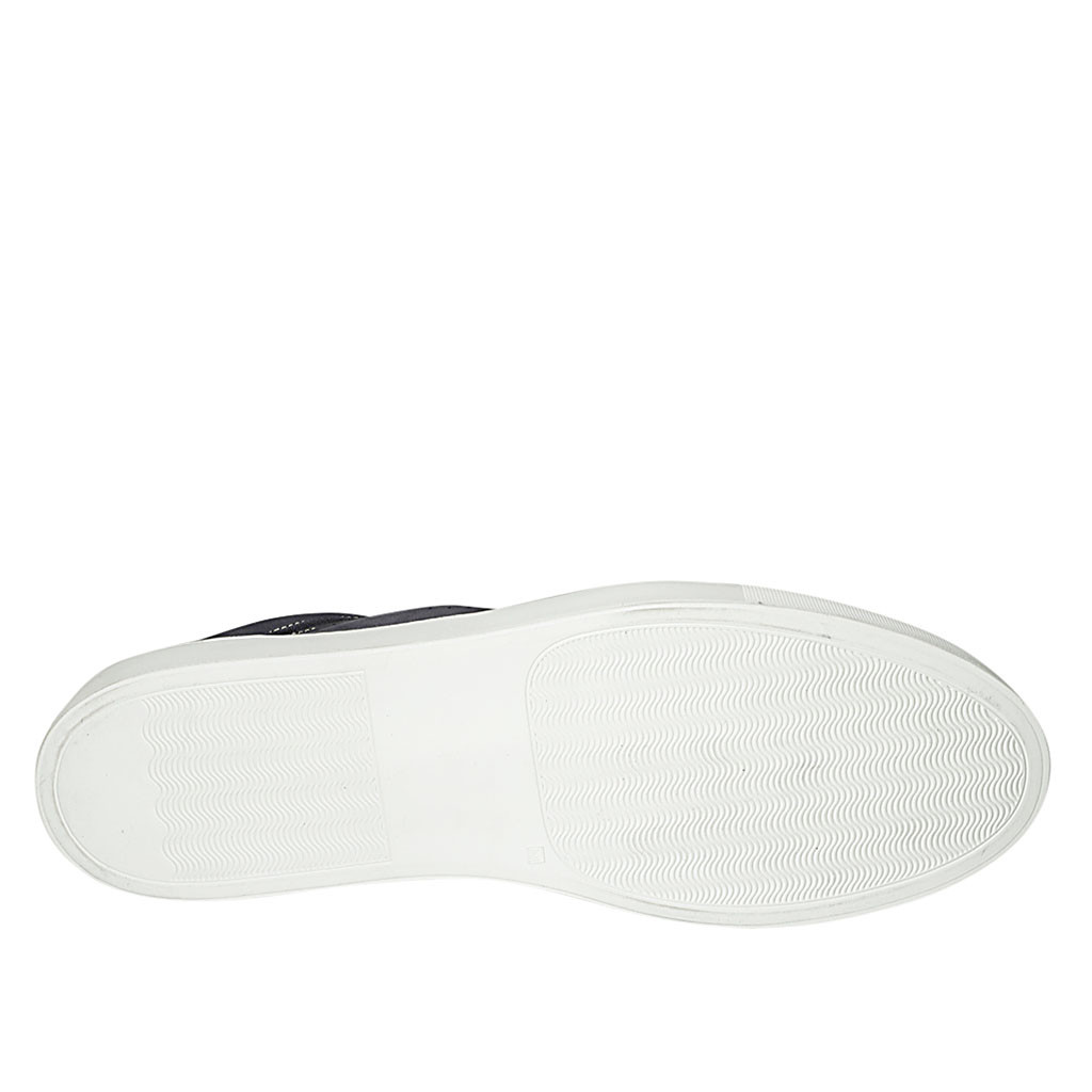 Man's laced shoe with removable insole in blue pierced nubuck leather and leather