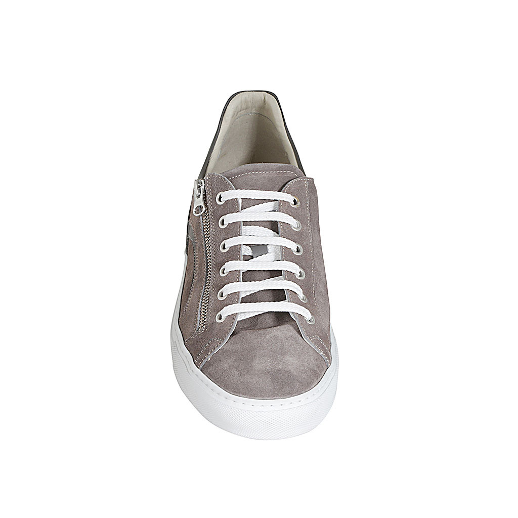 Woman's boot in black suede with accessory and zipper heel 10