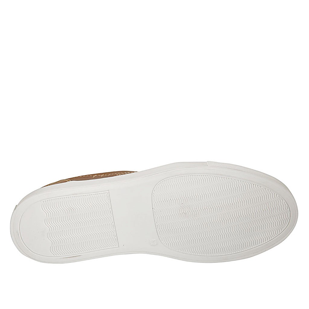 Woman's pointy boot with zipper and elastic band in brown suede heel 2