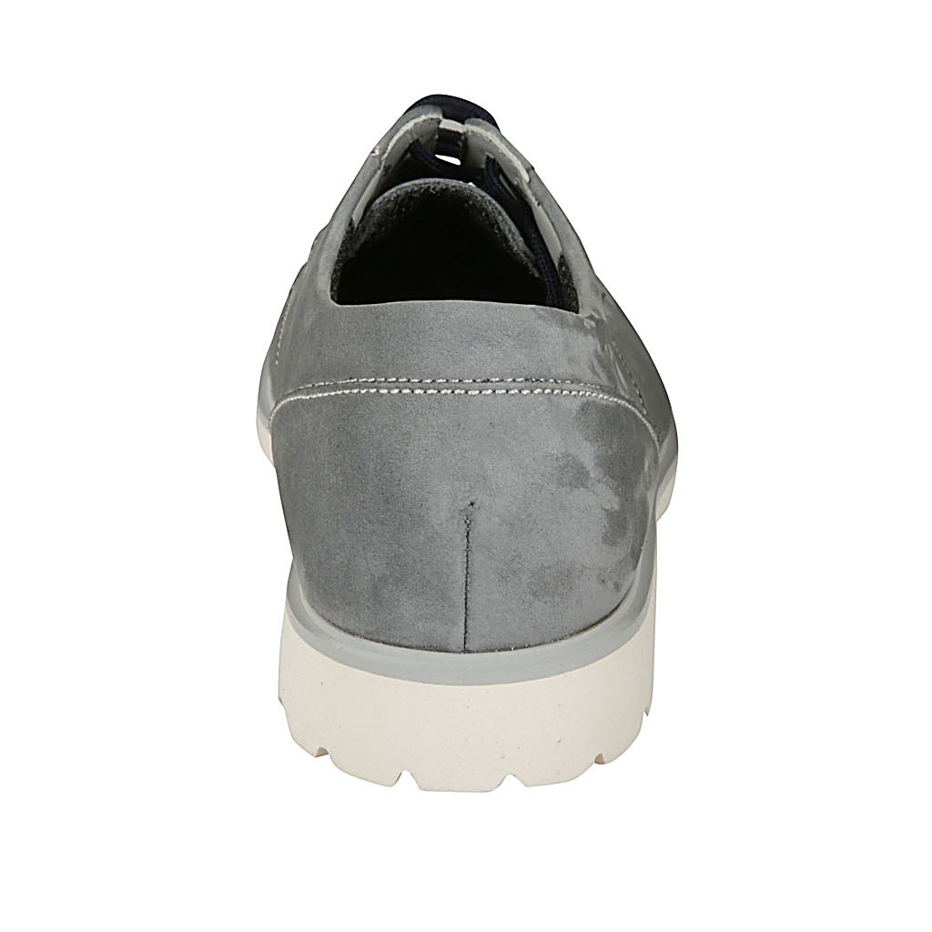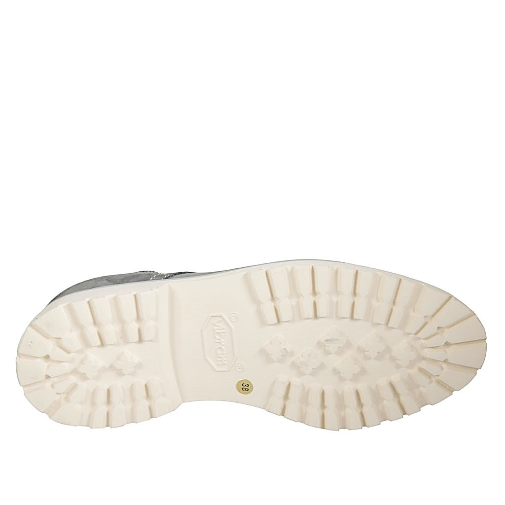 Woman's sandal in blue grey pearly and multicolored printed leather wedge heel 5