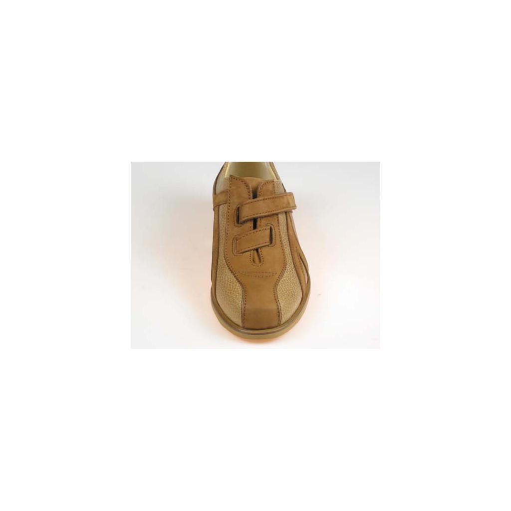 Men's casual shoe with velcro strap in dark and light cognac brown leather