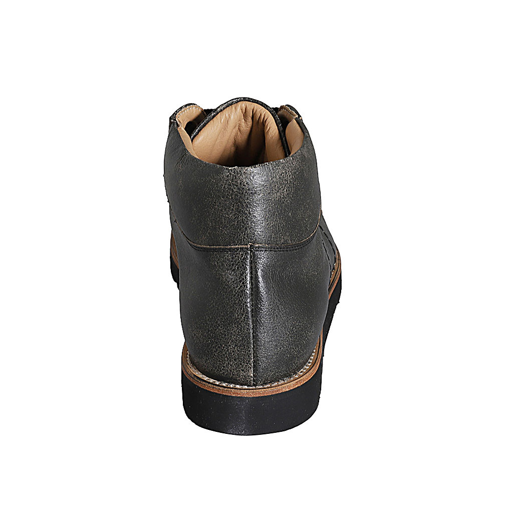 Men's ankle-high casual laced shoe in grey vintage leather with removable insole - Available sizes:  36, 37, 38, 46, 47, 49