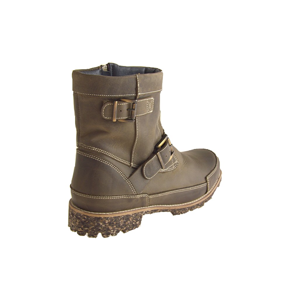Men's laced casual shoe with zipper and removable insole in taupe leather and suede