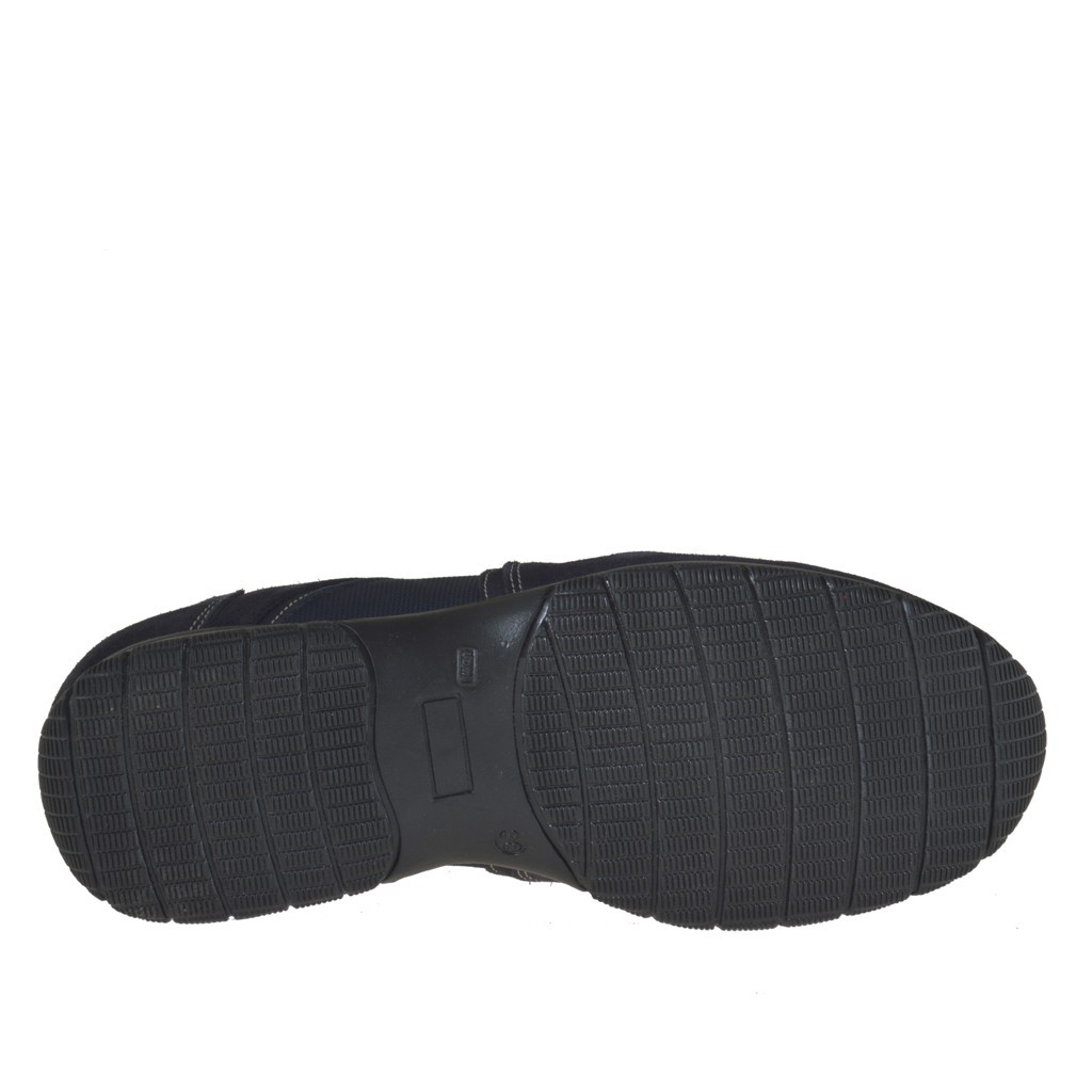 Woman's pump withh removable insole and gold accessory in black leather and black pierced suede wedge heel 6