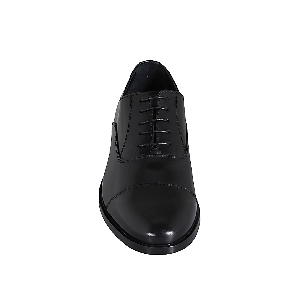 Elegant men's shoes with optional laces in dark blueleather and patent leather