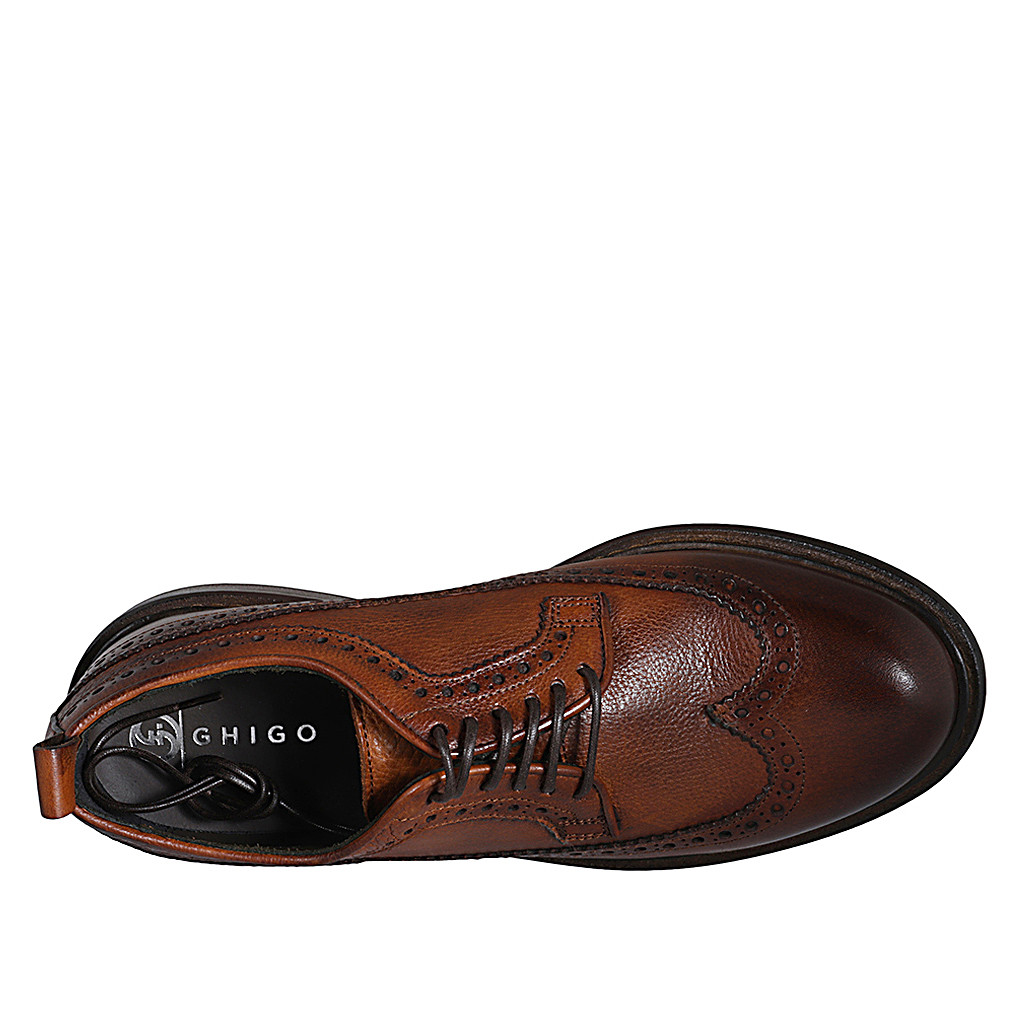 Men's laced high-quality derby shoe in cognac brown leather with wingtip
