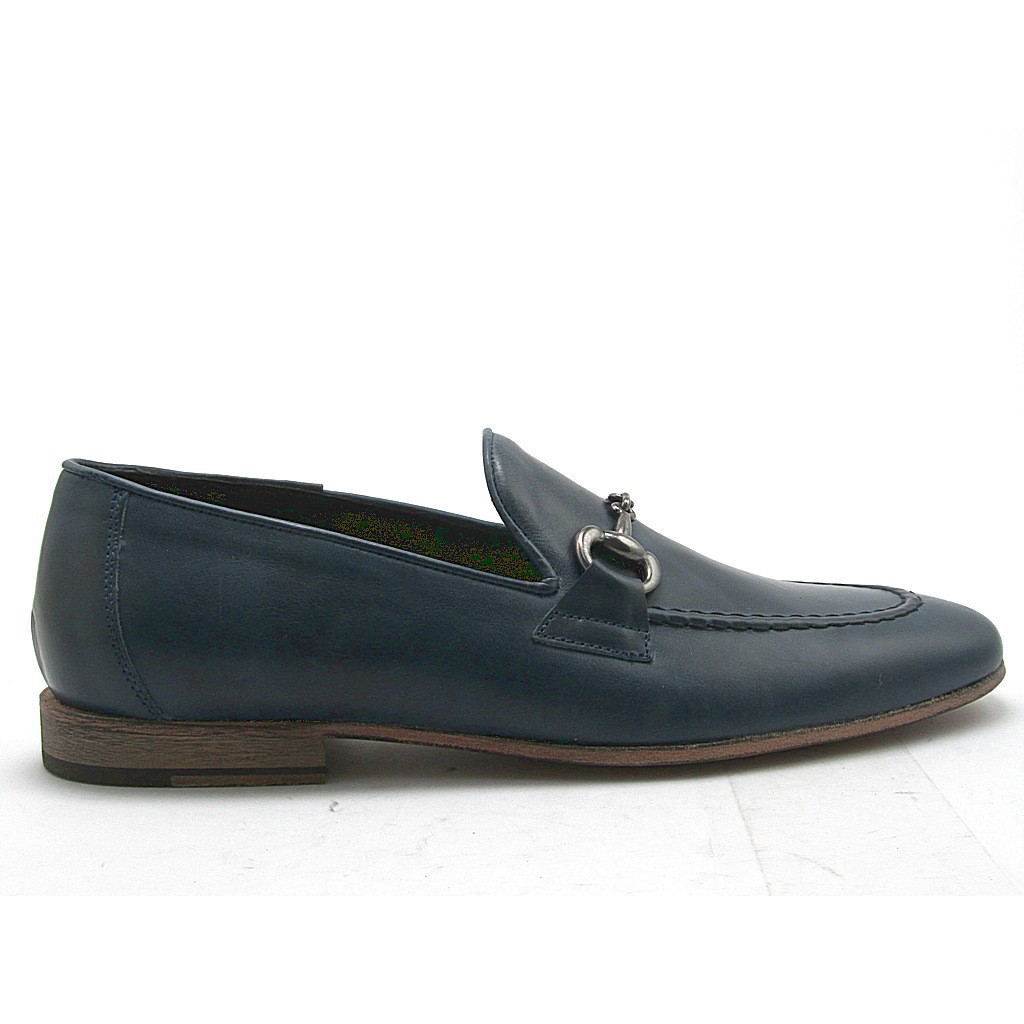 Men's loafer with accessory in dark blue leather - Available sizes:  38