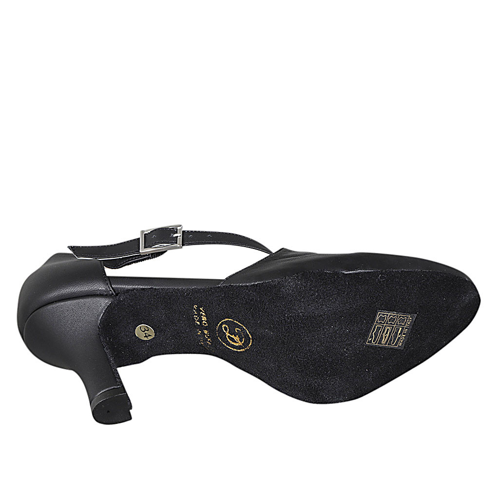 Dancing shoes with crossed strap in black leather heel 8 - Available sizes:  33, 43