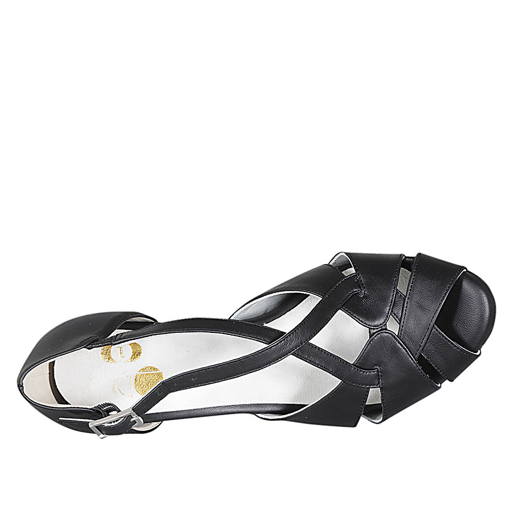 Dancing shoes with crossed strap and open toe in black leather heel 8 - Available sizes:  33, 42