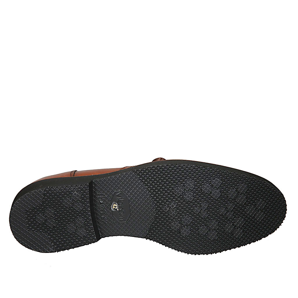 Woman's laced Oxford shoe with wingtip decorations in cognac brown leather heel 3 - Available sizes:  43